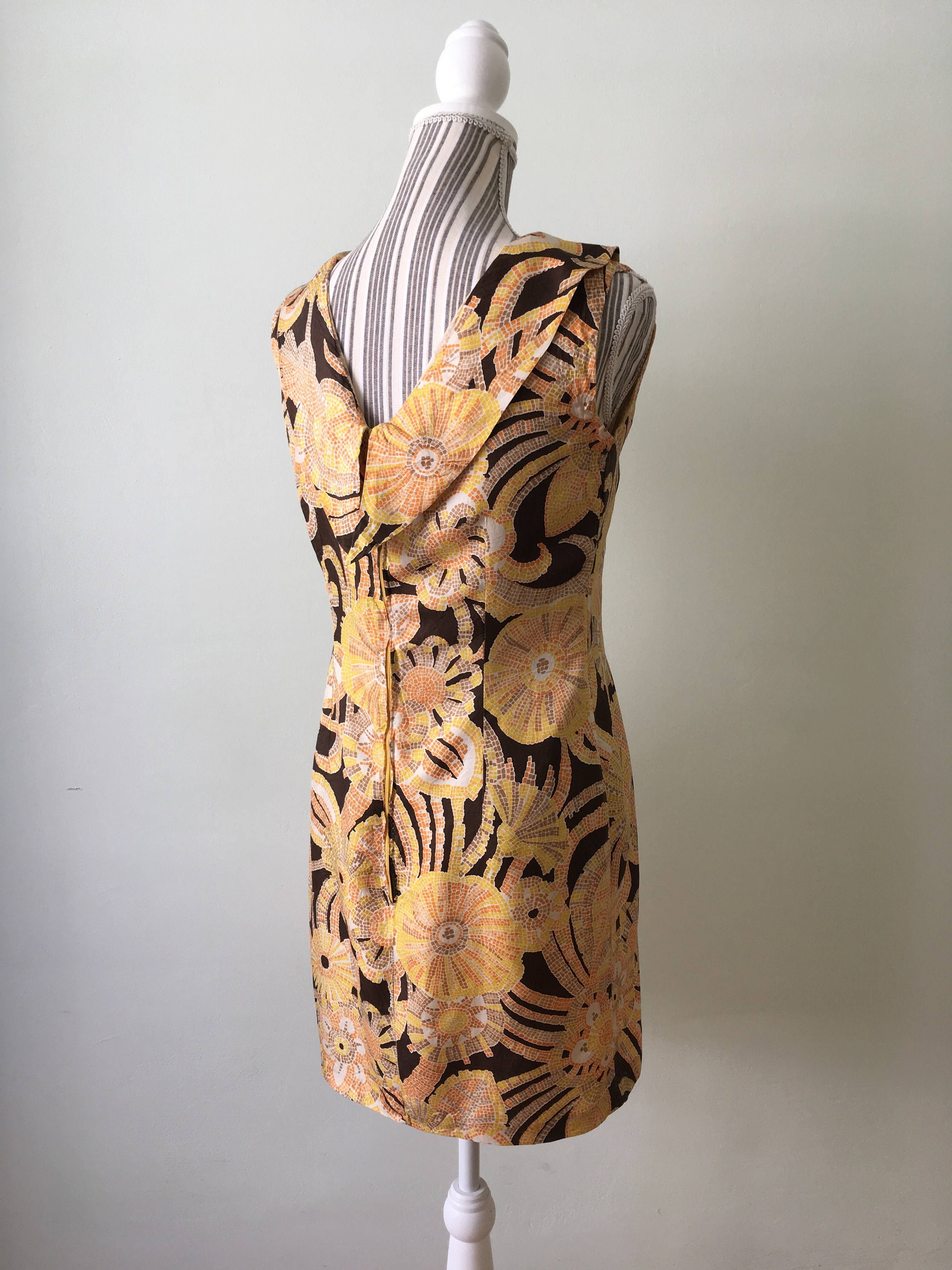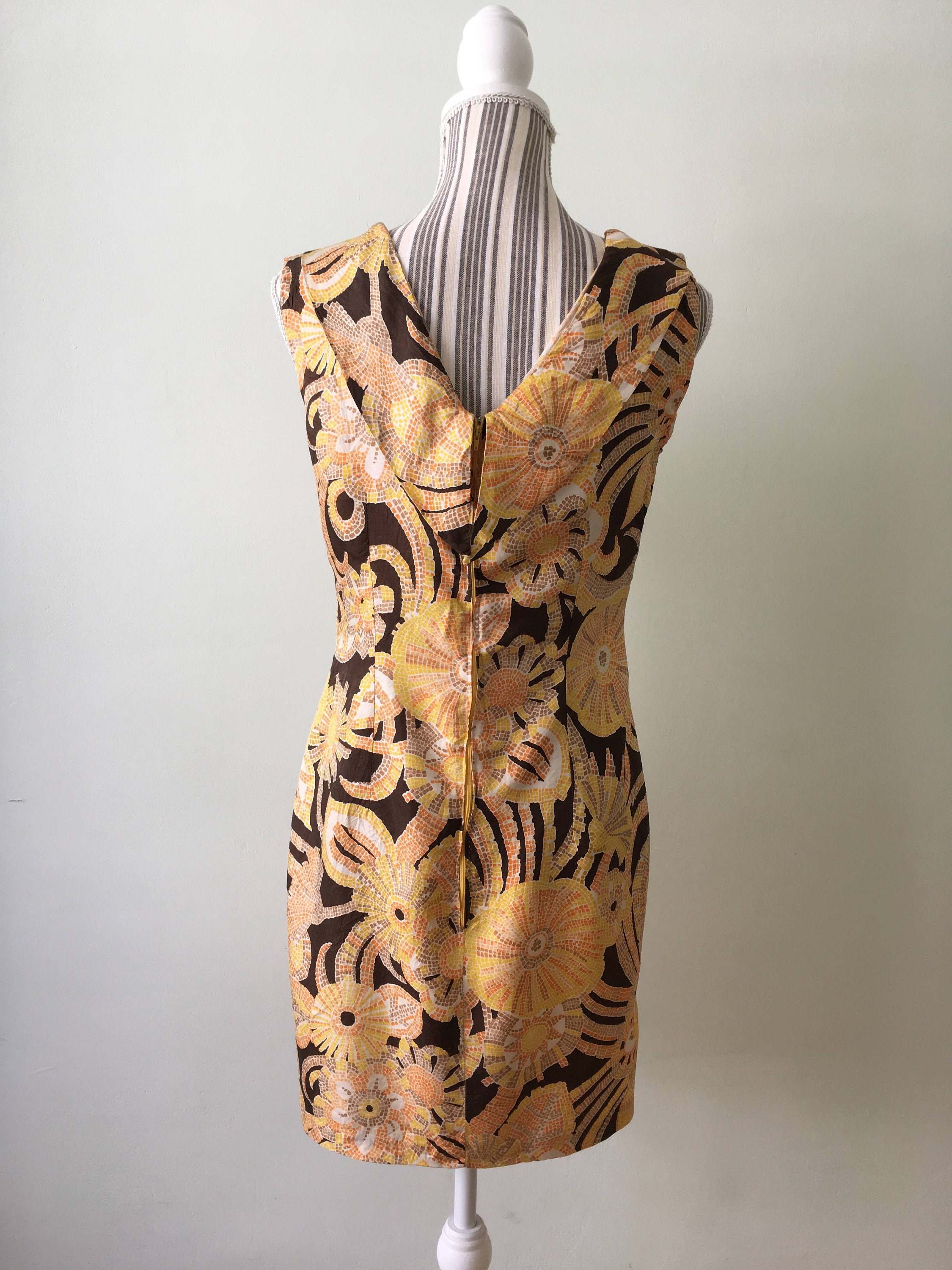 Vintage 60s light summer dress, made of thin sheer flowy silk fabric, back zipper.