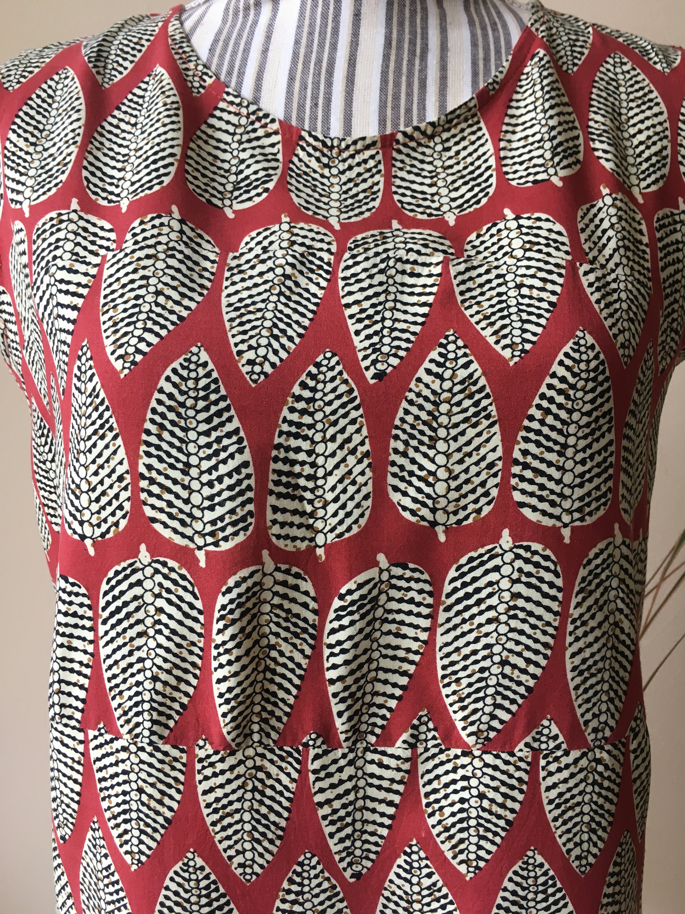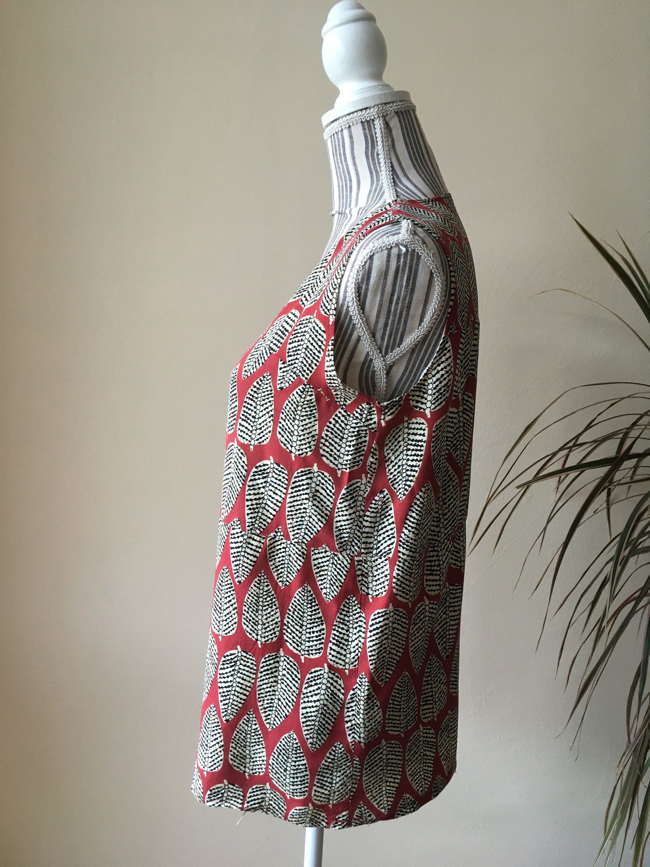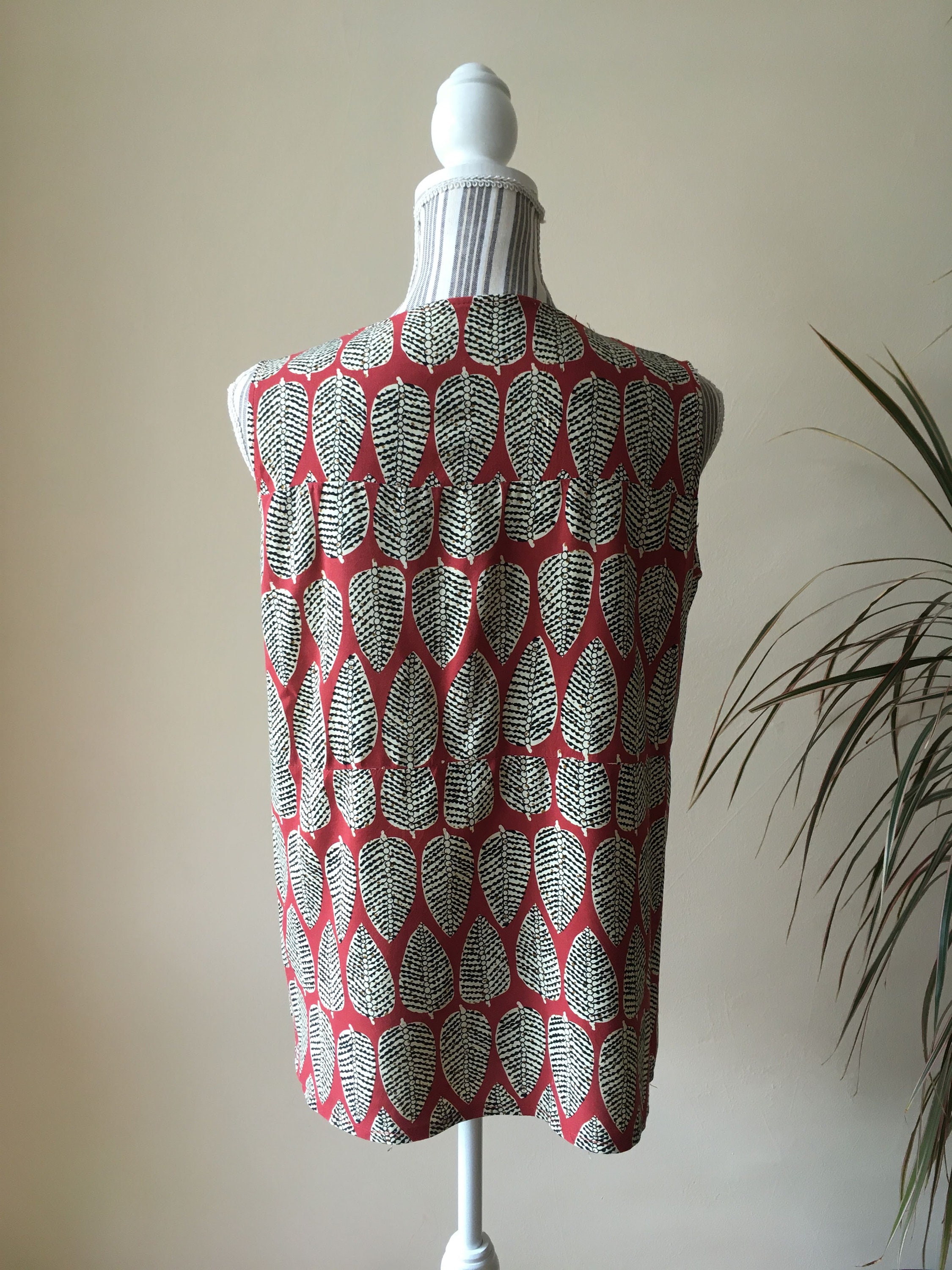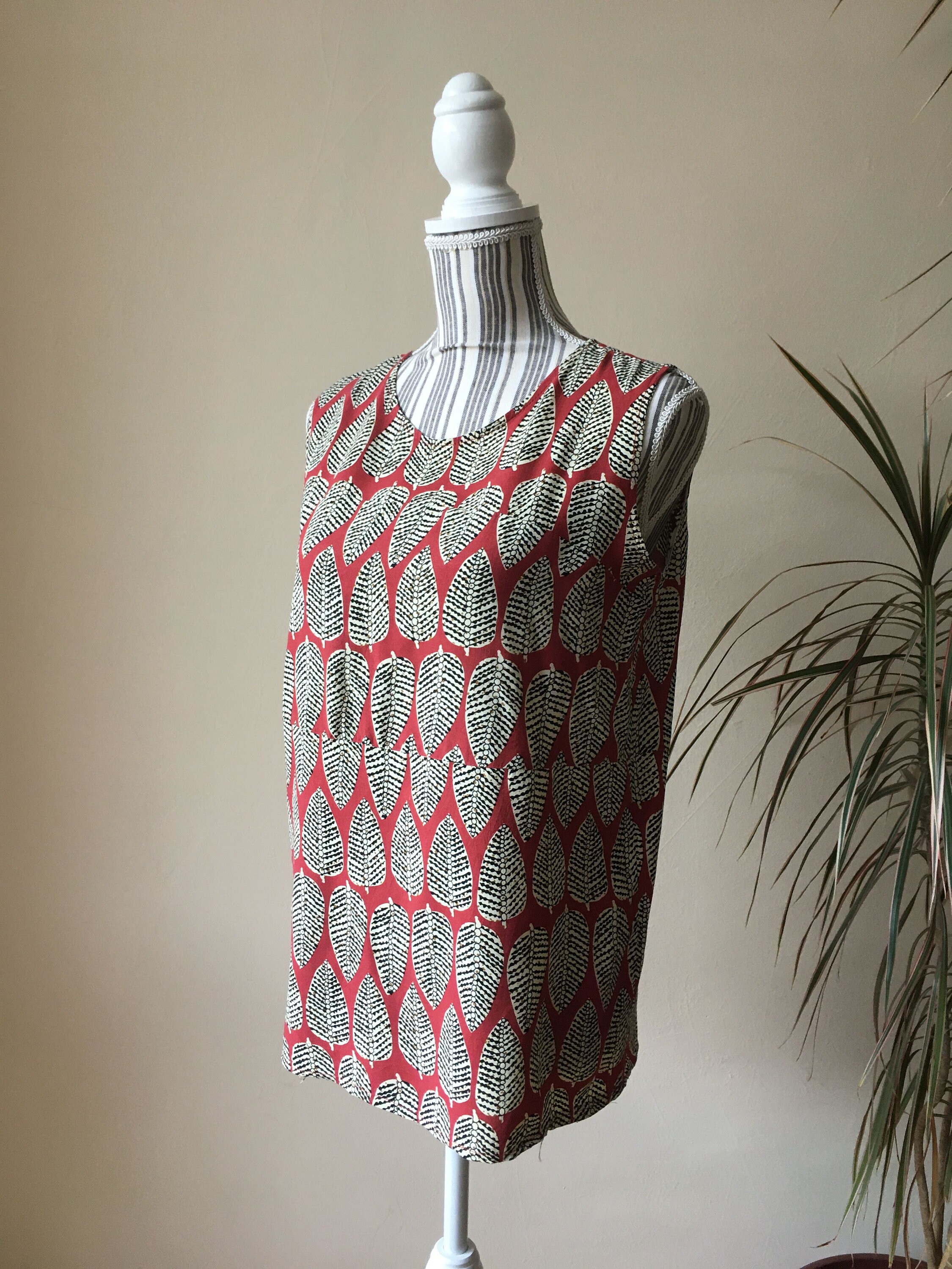 This is a beautiful burtn orange leaf patterned boxy shift top for women, made of lightweight viscose fabric. This vintage loose fitting top was handmade as you can tell from the stitching. There is no label, but this vintage shirt fits like size S.